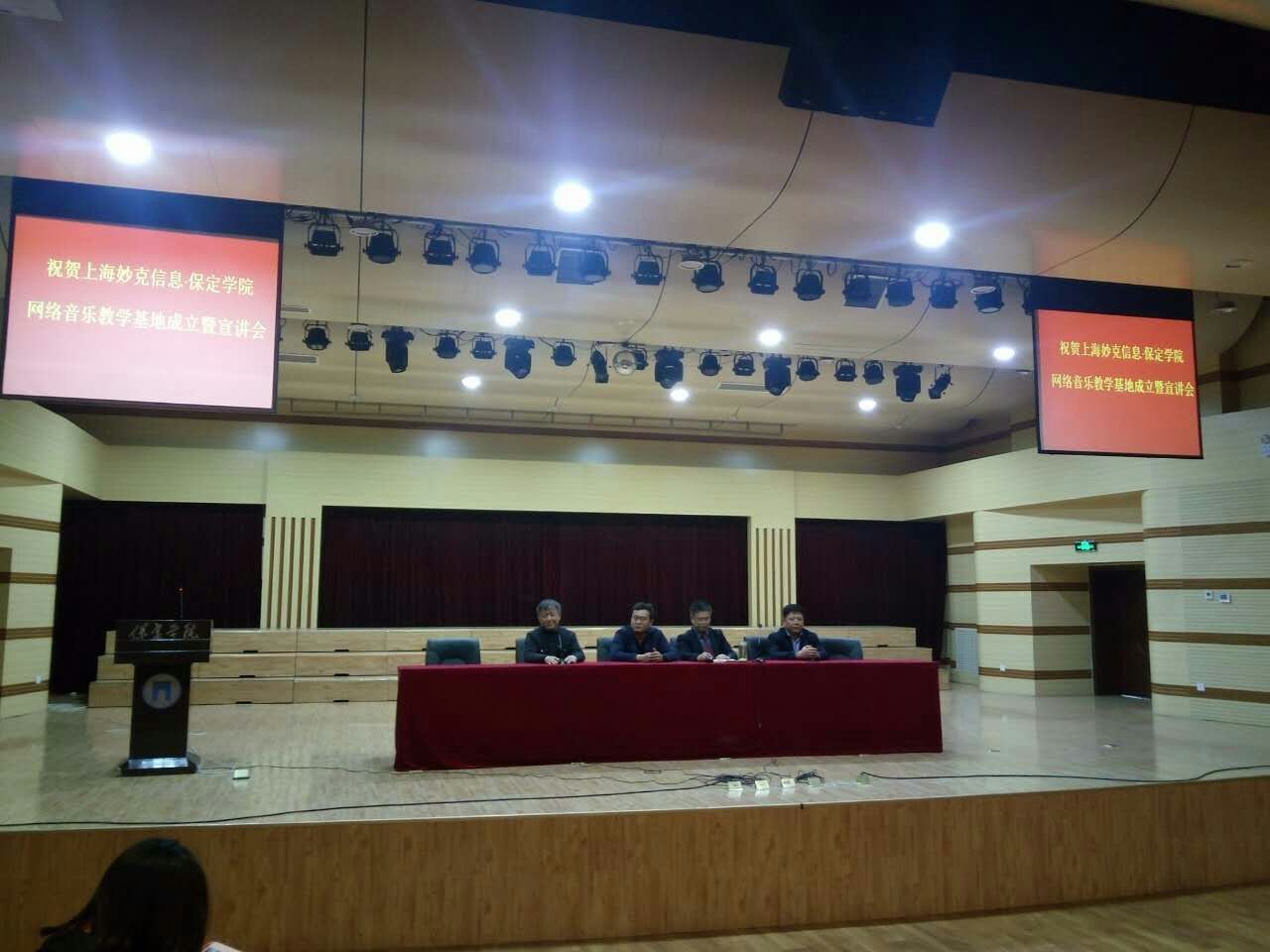 上海妙克信息科技有限公司437必赢会员中心网络音乐教学实训基地于2017年4月6日正式揭牌启动。出席本次活动的有437必赢会员中心科研处许明远处长,上海妙克信息技术有限公司姚立嘉先生,437必赢会员中心音乐系黄晓钟主任,党支部副书记张红玉。启动仪式上各位领导都发表了讲话。上海妙克和437必赢会员中心的领导对积极响应国家提倡导的互联网+与高校转型都做了各自的深层解读。活动期间437必赢会员中心音乐系在校员工都聚精会神的聆听,热烈的掌声此起彼伏。