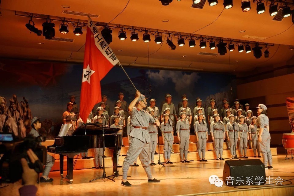 “长征·上,是二万五千里的奔波:长征·上,是两万五千里的意志”,中国工农红军长征胜利是新中国解放·上的重要里程碑,2016年恰逢具有伟大历史意义的红军长征胜利80周年,为了纪念这个伟大的节日,我系充分结合自身特色,以系传统活动“五月的鲜花”合唱节形式,于5月12日晚在音乐厅举办了主题为“光辉岁月飞扬的红飘带-----纪念中国工农红军长征胜利80周年合唱”。学院领导、各系党总支书记以及各系员工代表观看了本场演出。学院党委副书记宋书通致辞。