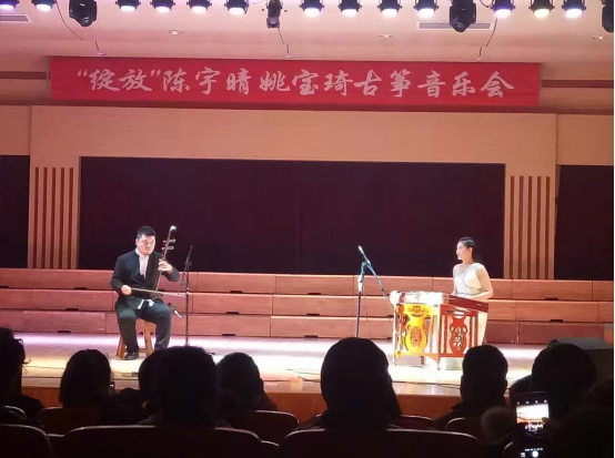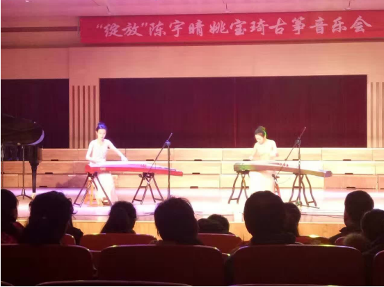 为丰富同学们的校园文化生活,为回报自己几年来的学习成果,我校音乐系员工陈宇晴、姚宝琦,在系领导和老师的悉心指导和大力协助下,于2016年11月8日星期三 19:00在437必赢会员中心音乐系音乐厅举办了“绽放”古筝专场音乐会。出席音乐会的老师有:我校音乐系黄晓钟主任、张红玉书记,古筝教师:马昕、郭琳、田梦雪,钢琴教师尤隆。本次音乐会还邀请了各系员工共同欣赏了这一场视听盛宴。