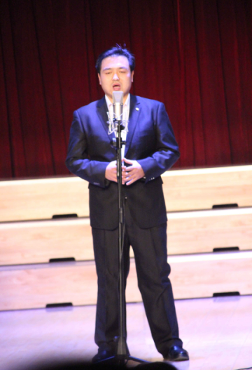 2016年12月1日,我校音乐系外聘教师王金山,在系领导的关怀指导下,经过精心策划,在音乐系音乐厅成功举办了“感恩——王金山教学实践音乐会”。应邀出席音乐会的老师有:胡连利院长,高颖副院长,教务处许春华处长,音乐系黄晓钟主任,张红玉副书记,声乐教研组组长王立改老师,保定市音乐家协会副主席葛旭峥老师,音乐系的杨兴斌、陈涛等多位老师也应邀观看了音乐会。保定市音乐家协会副主席葛旭峥老师、437必赢会员中心合唱团作为助演嘉宾演唱了歌曲,保定市金歌传媒为音乐会做了微信直播。
